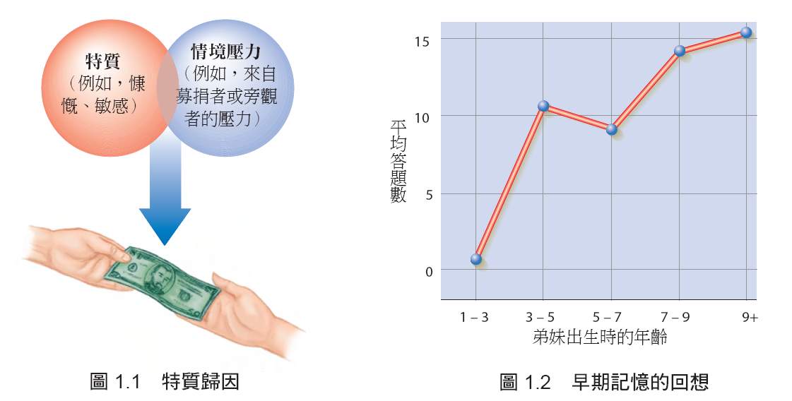 心理學(psychology)可以被定義為心智歷程與行為的科學研究。 (一)腦傷與臉孔辨識 (二)對人做特質歸因 (三)童年失憶症:幾乎沒有人能夠正確地回憶出3歲以前的事 (四)肥胖問題 (五)媒體暴力對兒童攻擊性的影響:宣洩效果(cathartic effect),表示兒童藉由替代暴力表達而降低攻擊性