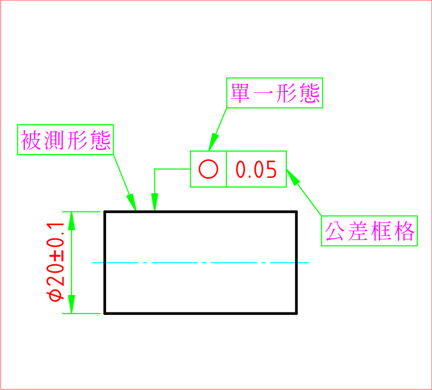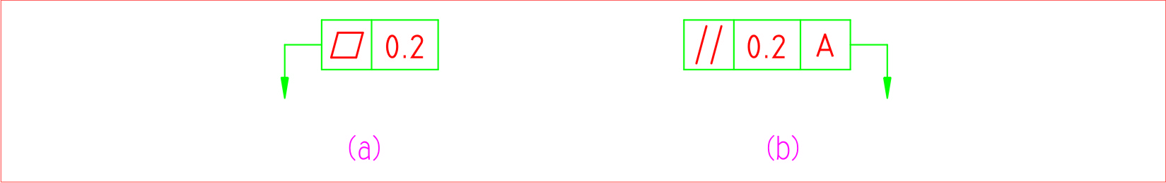若需限制被測形態在公差區域內的形狀時,則可加註在公差框格下方。 圖4-10 與幾何公差有關之註解標註