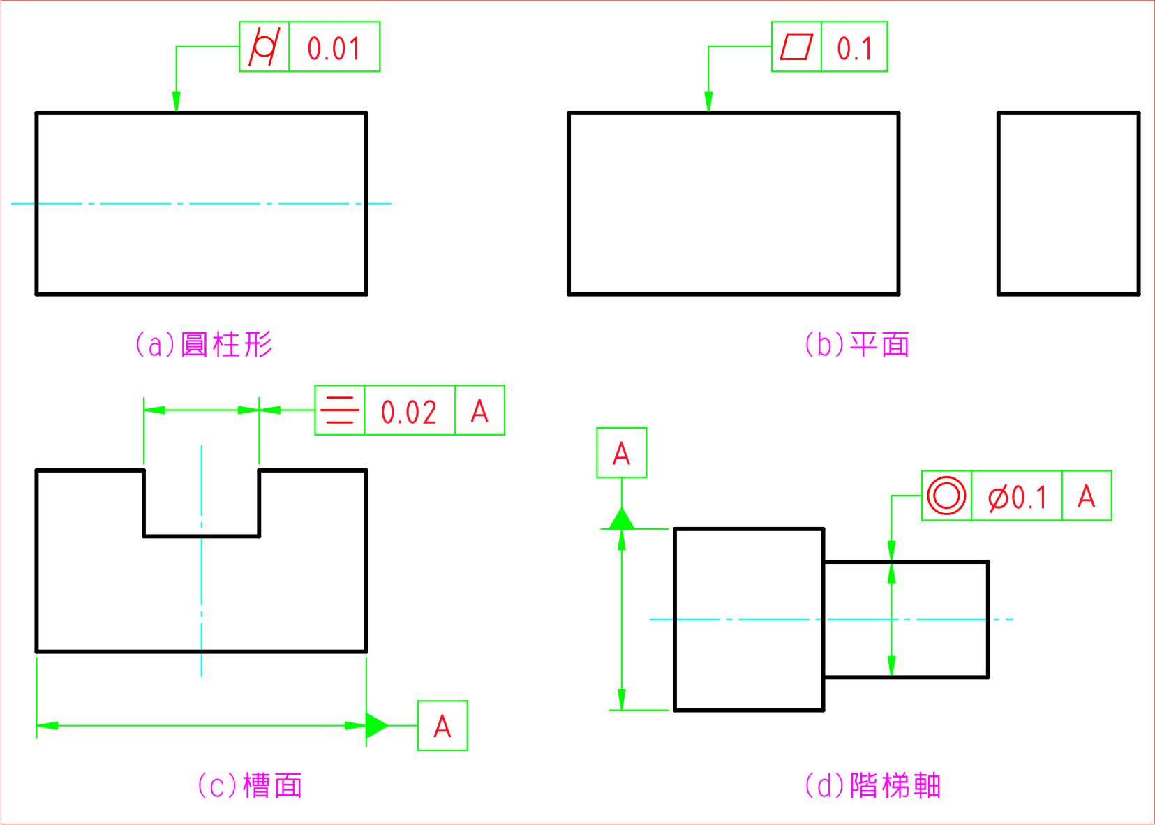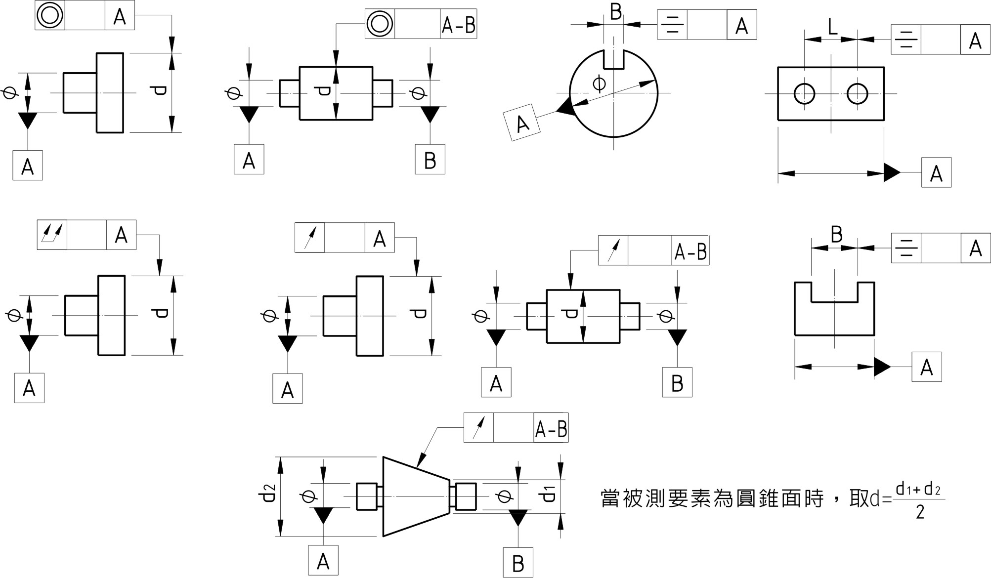 例如對於軸線的真直度、平行度、垂直度、位置度、同軸度、以及軸線或對稱平面的對稱度等幾何公差項目。亦即當尺寸公差和幾何公差之間可以建立補償關係的條件下,才能採用最大實體要求。所以被測形態或基準形態必須是尺寸形態的導出形態。