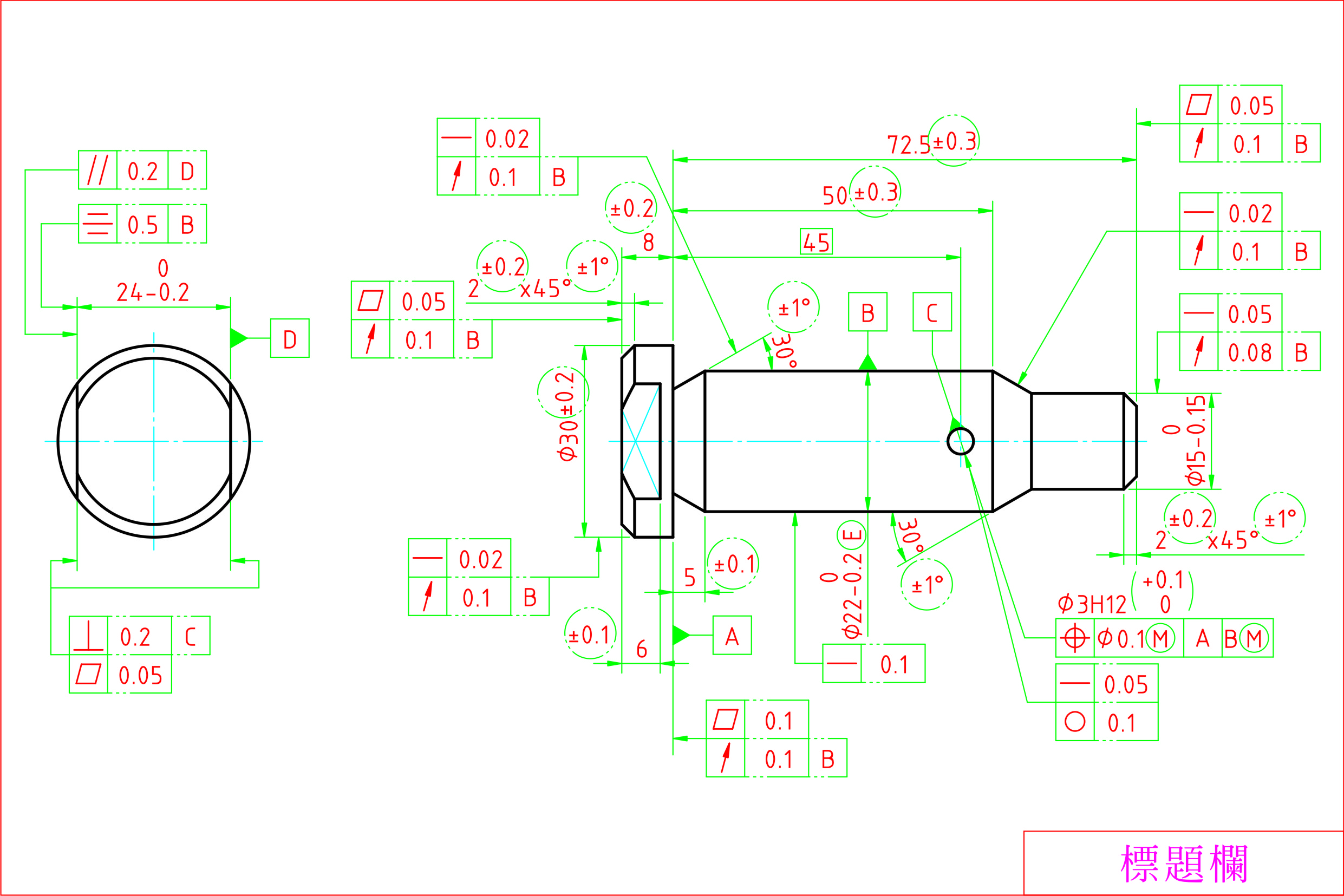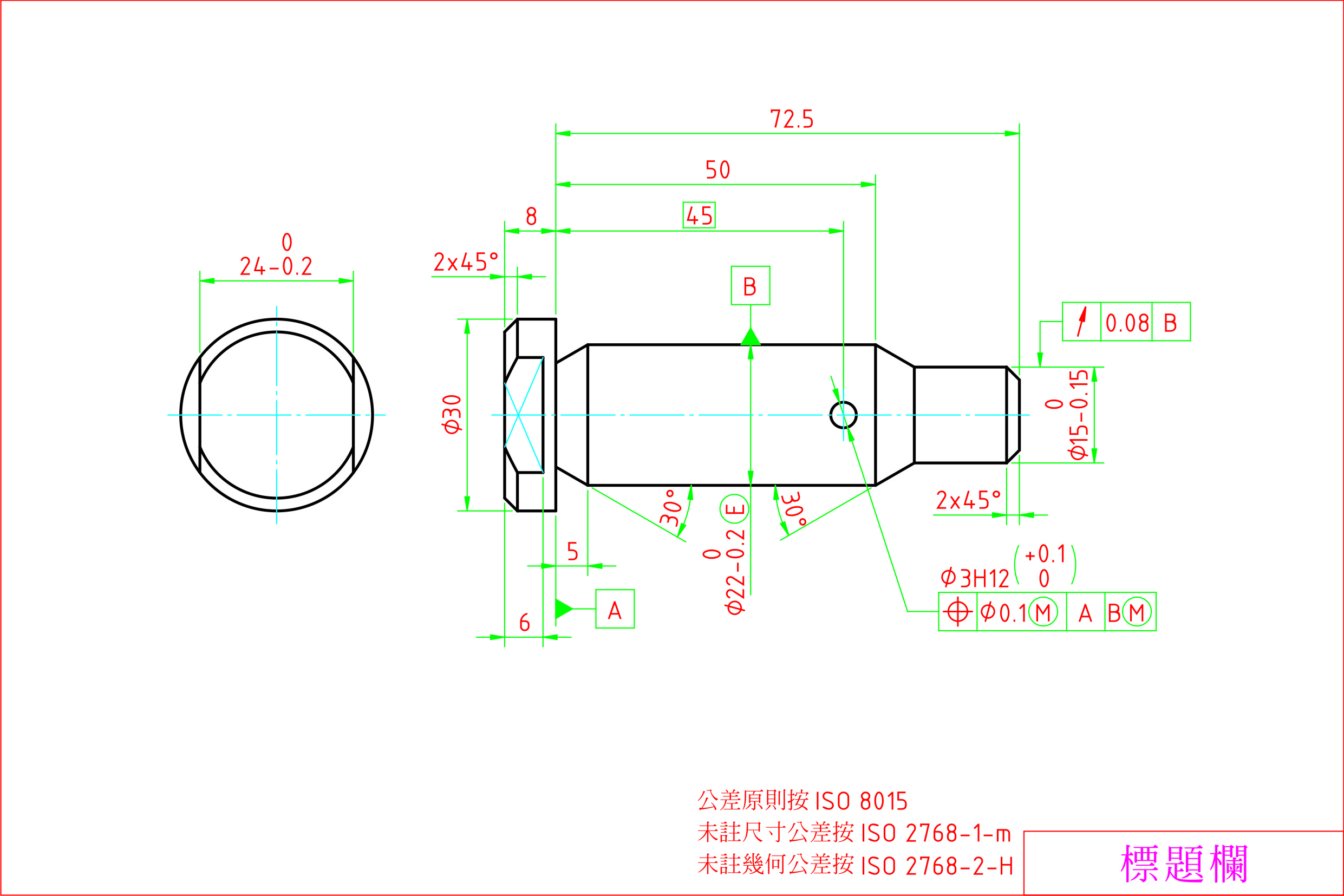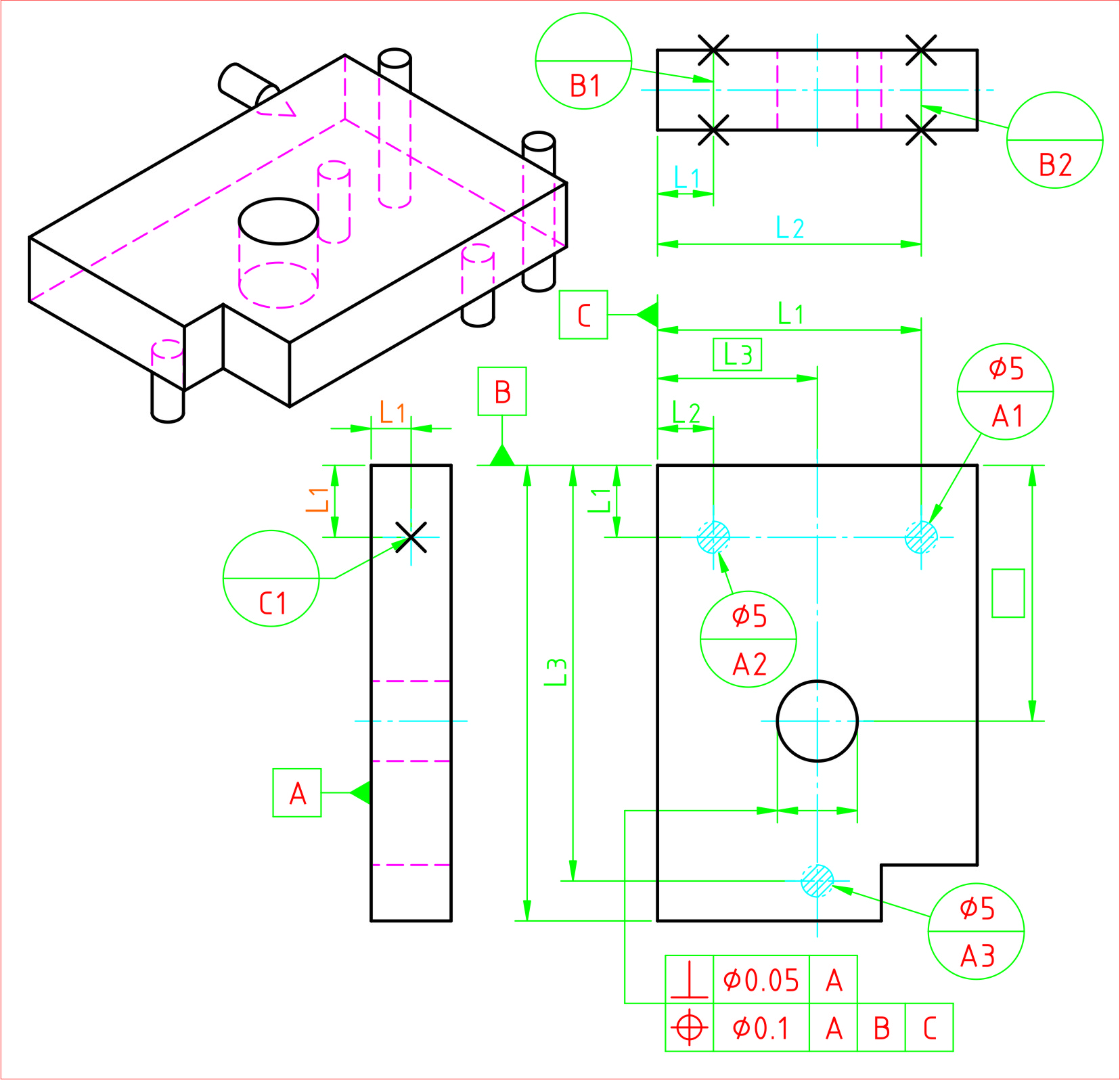 基準是確定被測形態公差區域方向與位置的依據;同時亦是評定被測形態方向和位置誤差的依據。所以在方向公差、位置公差、偏轉度公差的幾何公差框格一定要有第三格或更多格,並標註基準代號字母。