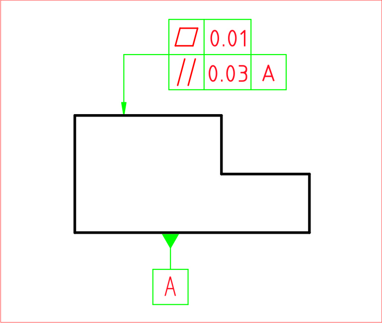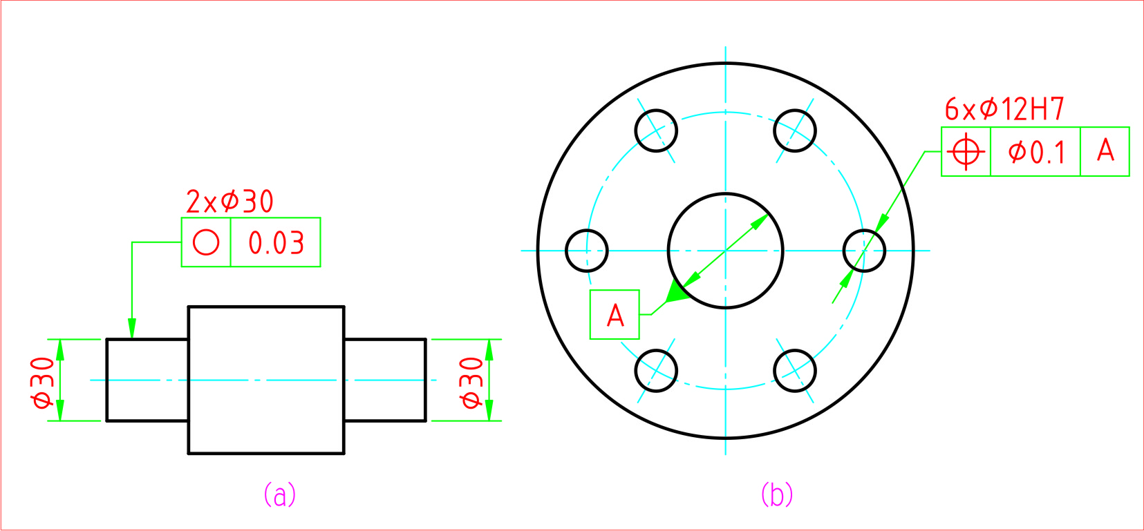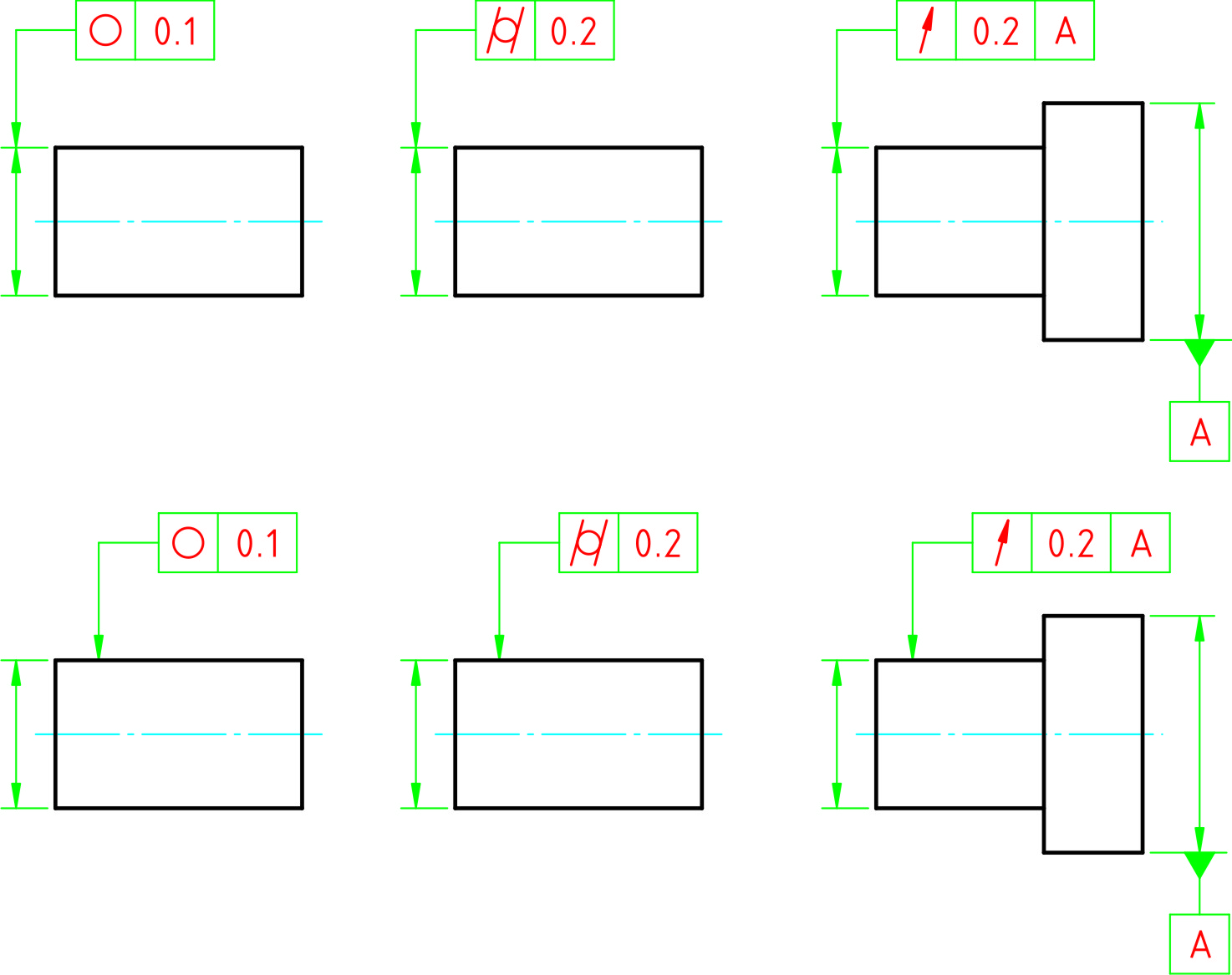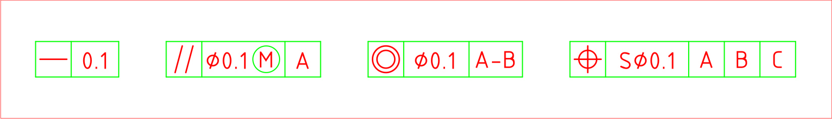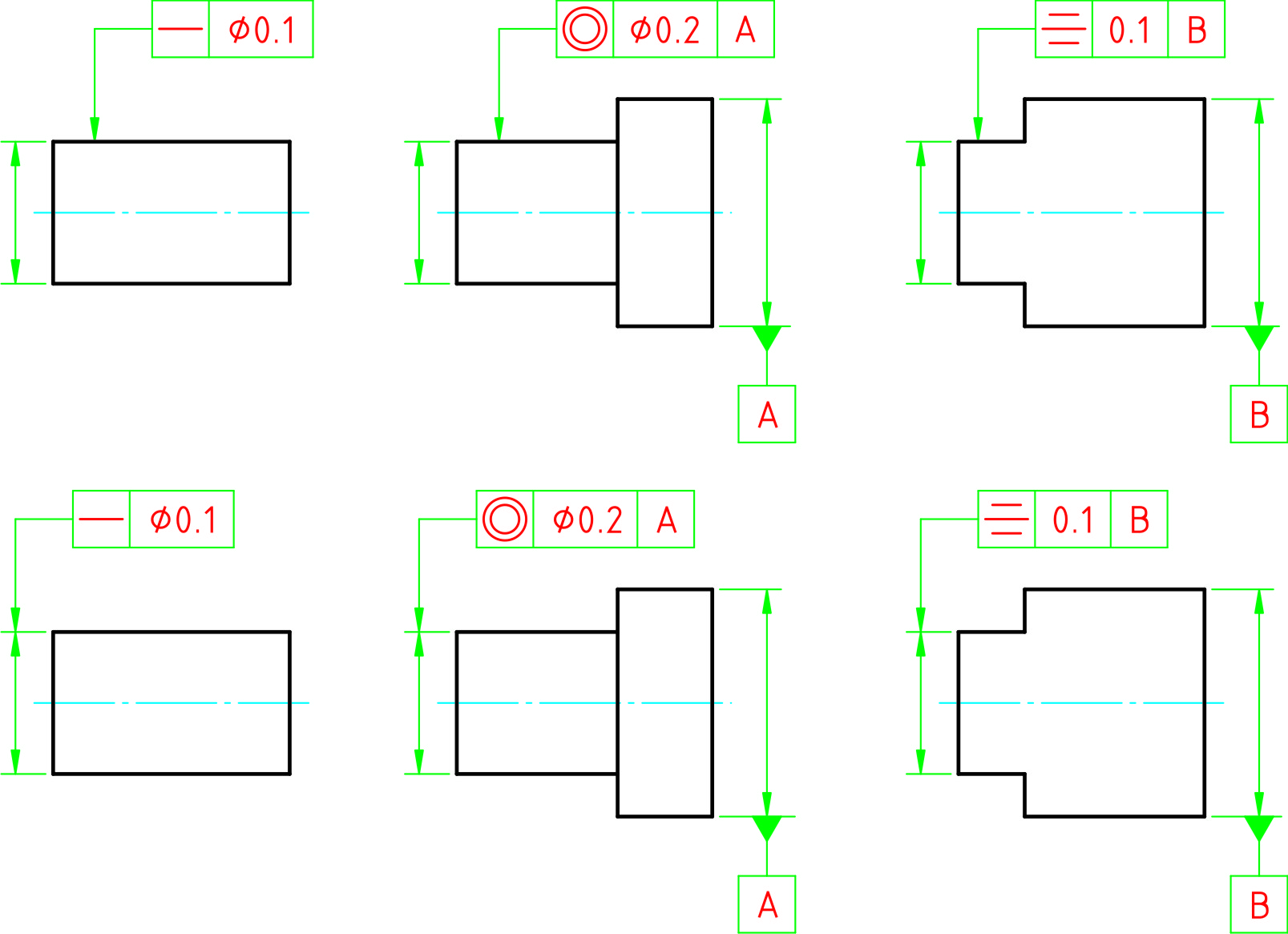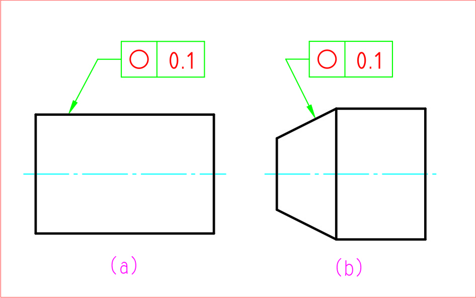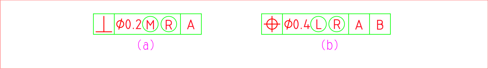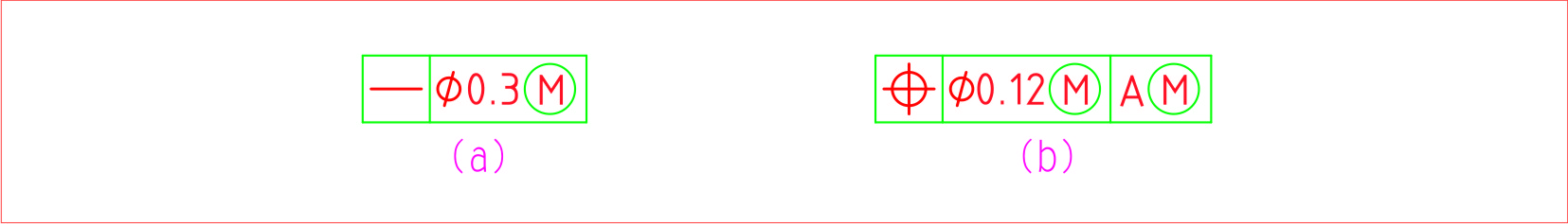 當需要對某個被測形態標註多項幾何性質的控制時,可將公差框格作上下疊置,如圖4-12所示,疊置時,一般將長的框格放在下面,較為美觀。 15 圖4-12 多項幾何性質的標註 要注意疊置標註必須是被測形態為同一形態,而且所控制該形態的形狀度公差值<方向度公差值<位置度公差值