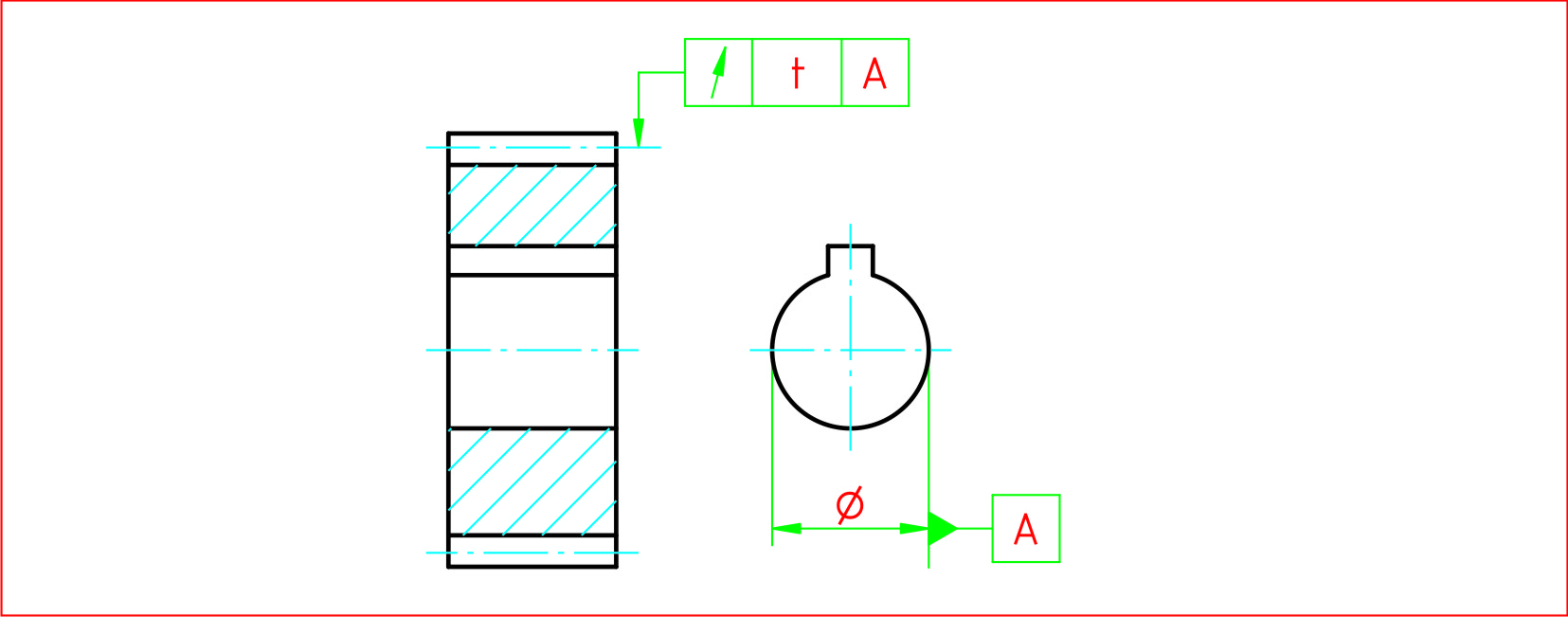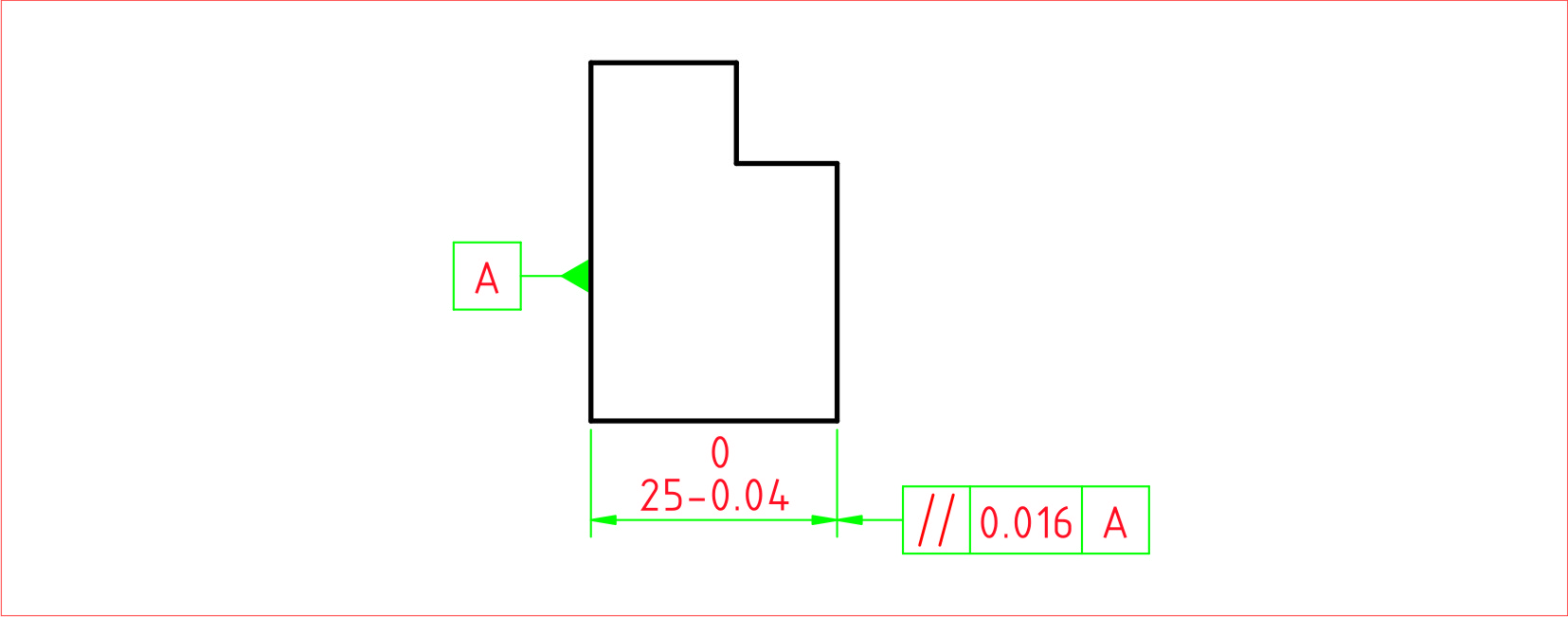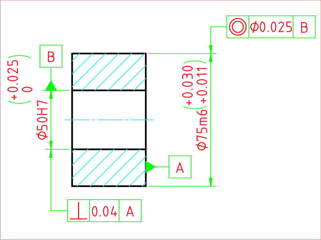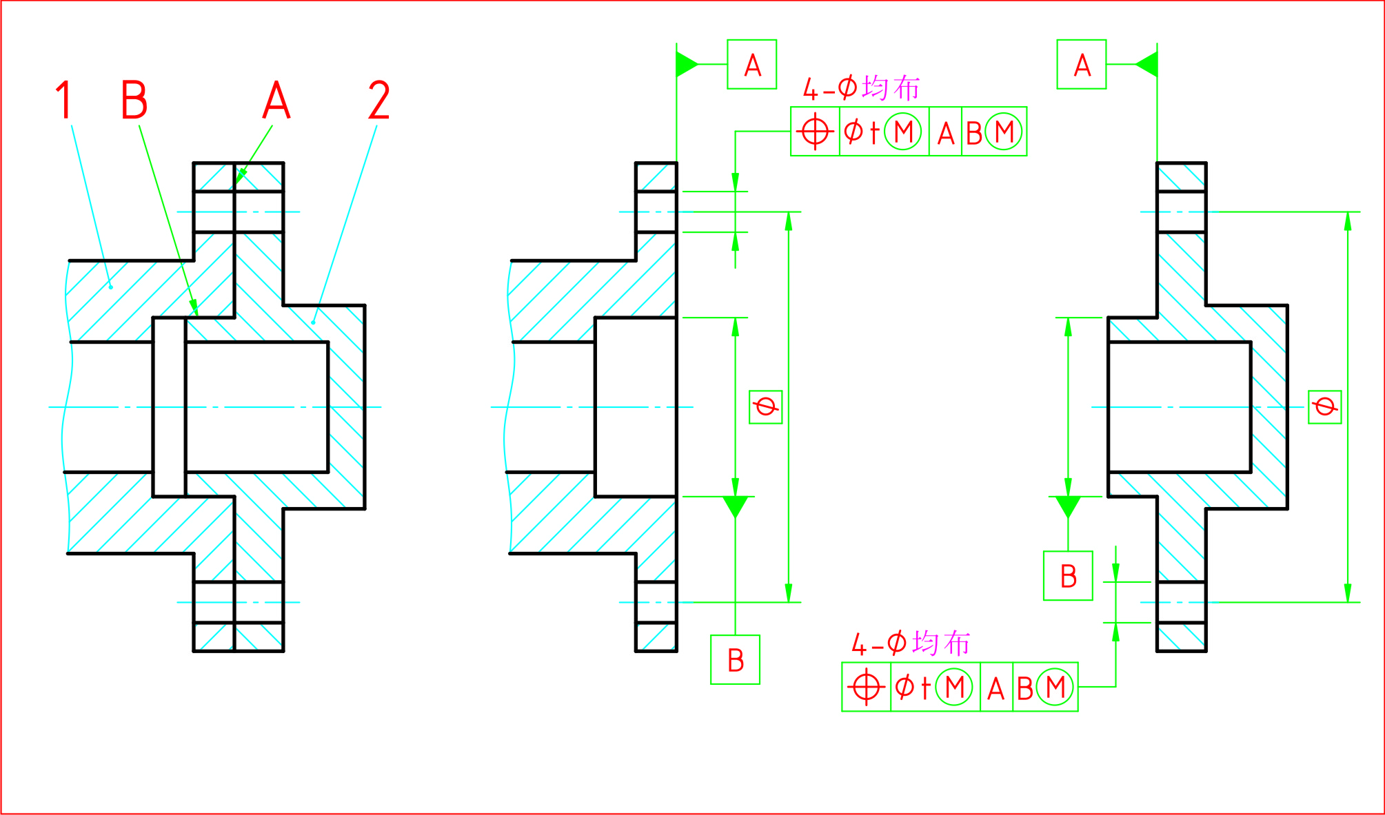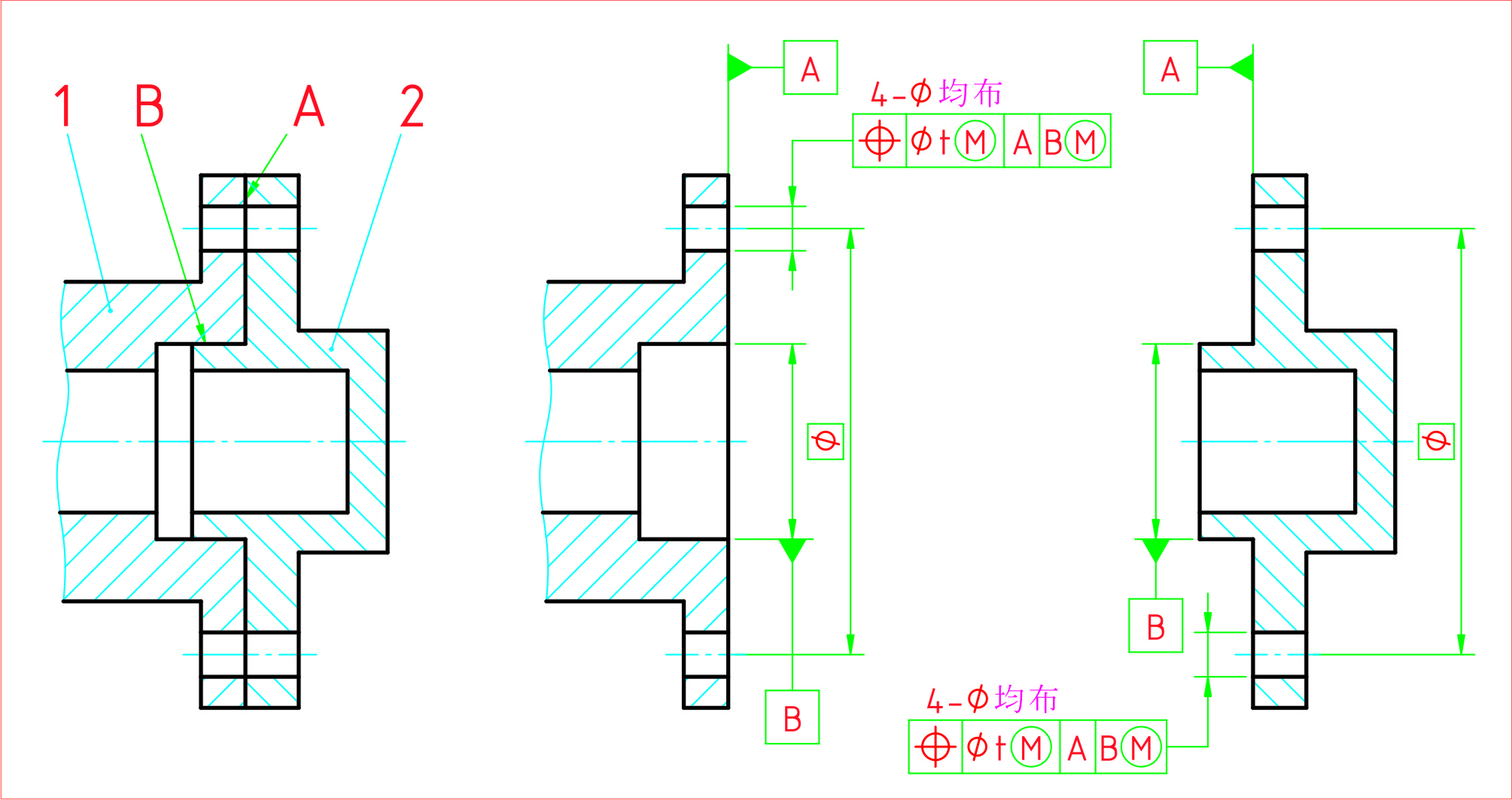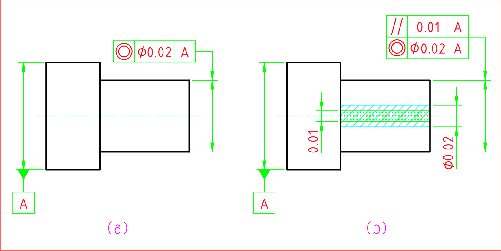 當需要對某個被測形態標註多項幾何性質的控制時,可將公差框格作上下疊置,如圖4-12所示,疊置時,一般將長的框格放在下面,較為美觀。 15 圖4-12 多項幾何性質的標註 要注意疊置標註必須是被測形態為同一形態,而且所控制該形態的形狀度公差值<方向度公差值<位置度公差值