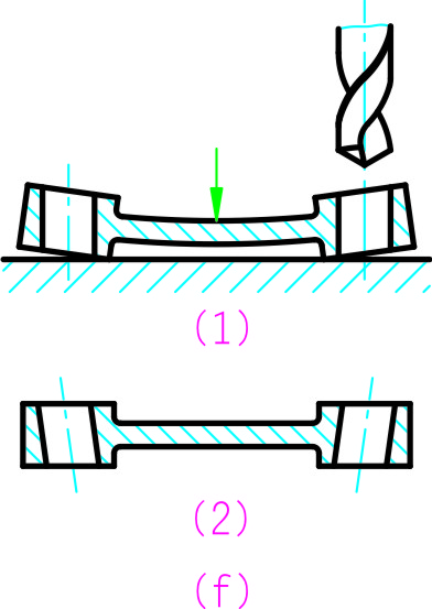 二、銑工件類: 1.基準面,要求真平度( c ),面銑換位(相鄰面),要求控制垂直度( b ),面銑換端(相對面),要求控制平行度( f ),如圖4-96。 106 圖4-96 (相對面)換端 (相鄰面)換位
