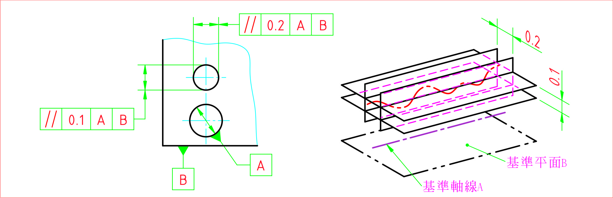若如圖4-85所示,應取其較大者,所以未註平行度公差值應選取0.5mm。 99 圖4-85 平行度(二) 兩者取較大者