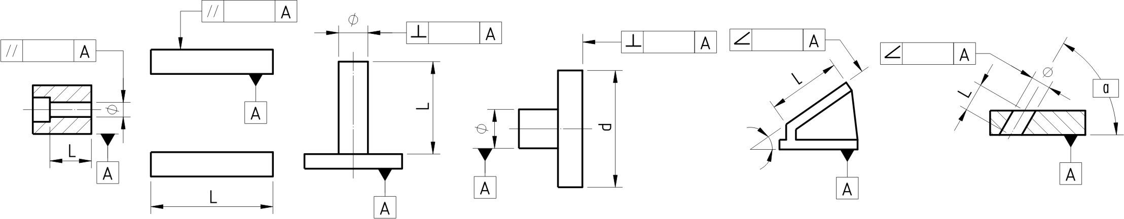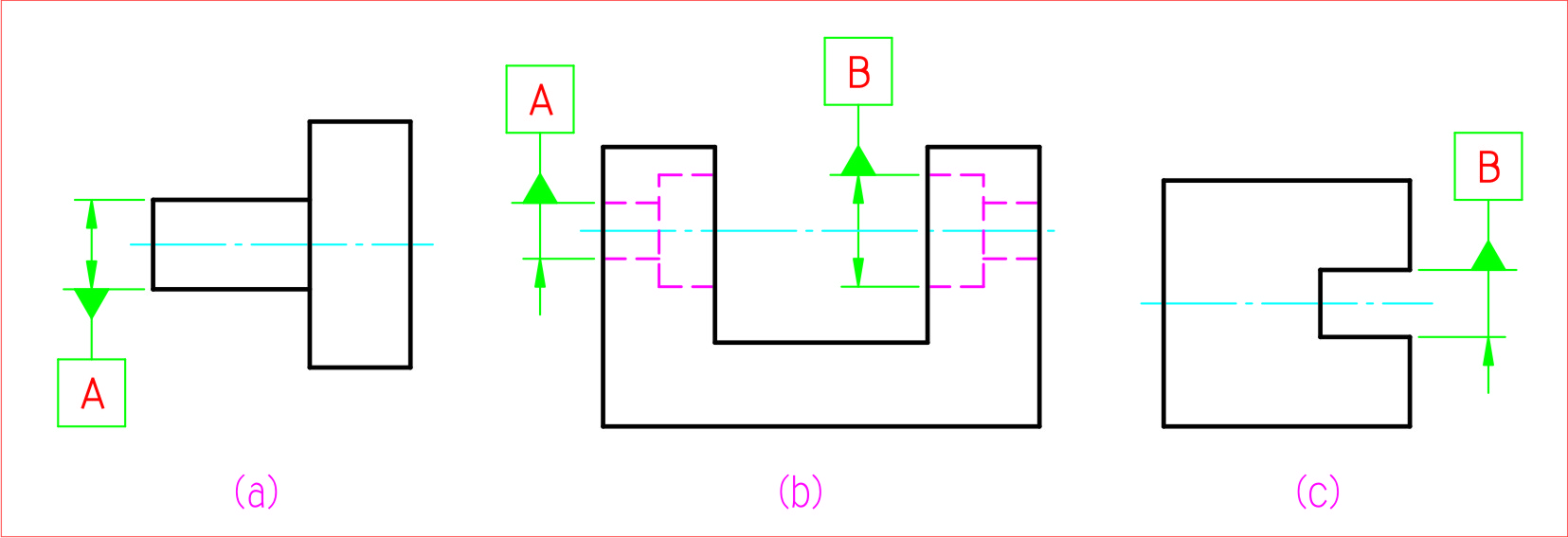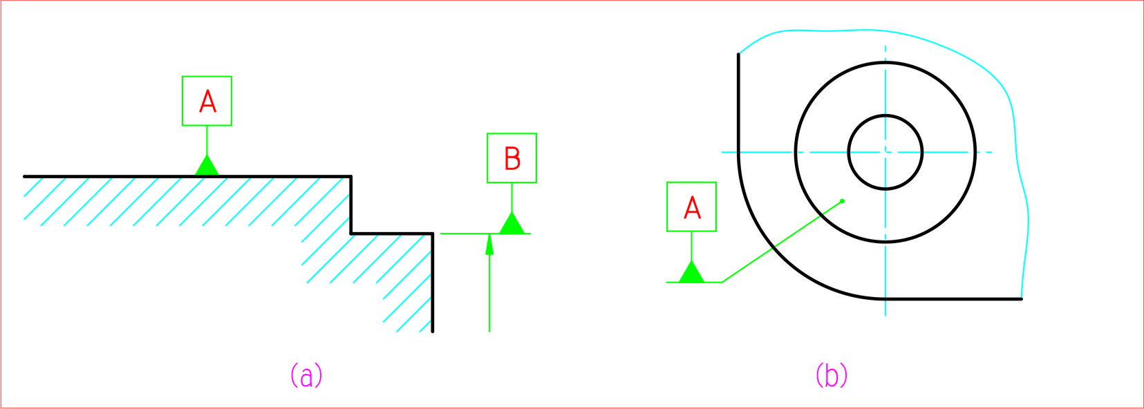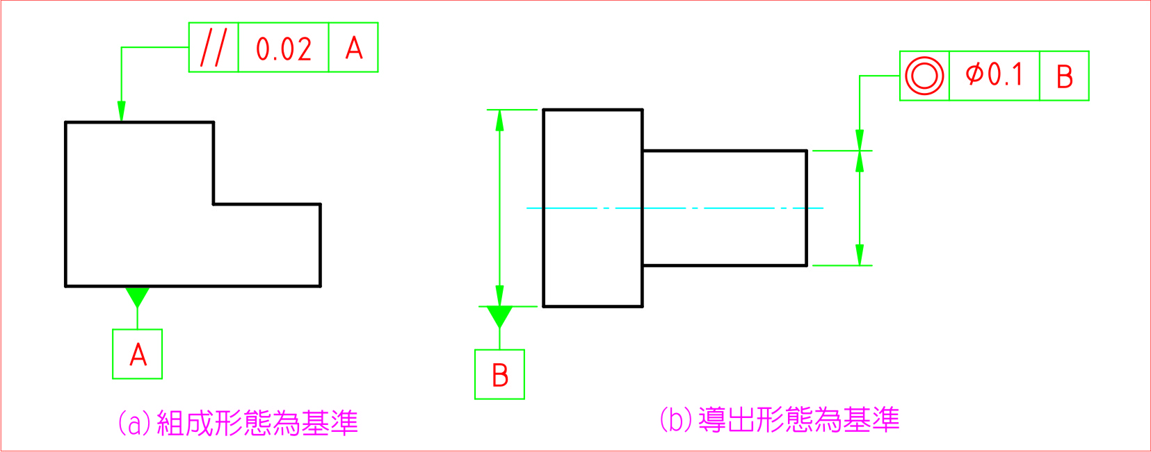 基準依其基準形態(datum feature)(所謂基準形態是零件上用來建立基準並實際起作用的實際形態)的不同,其表達方式如下: