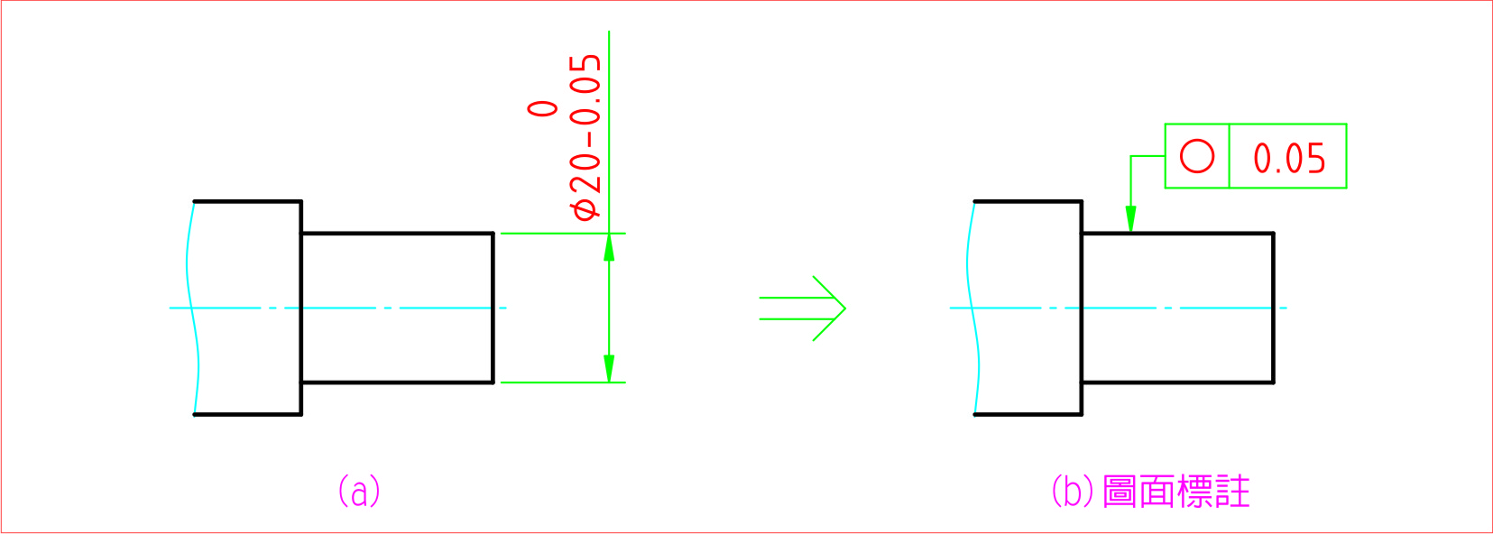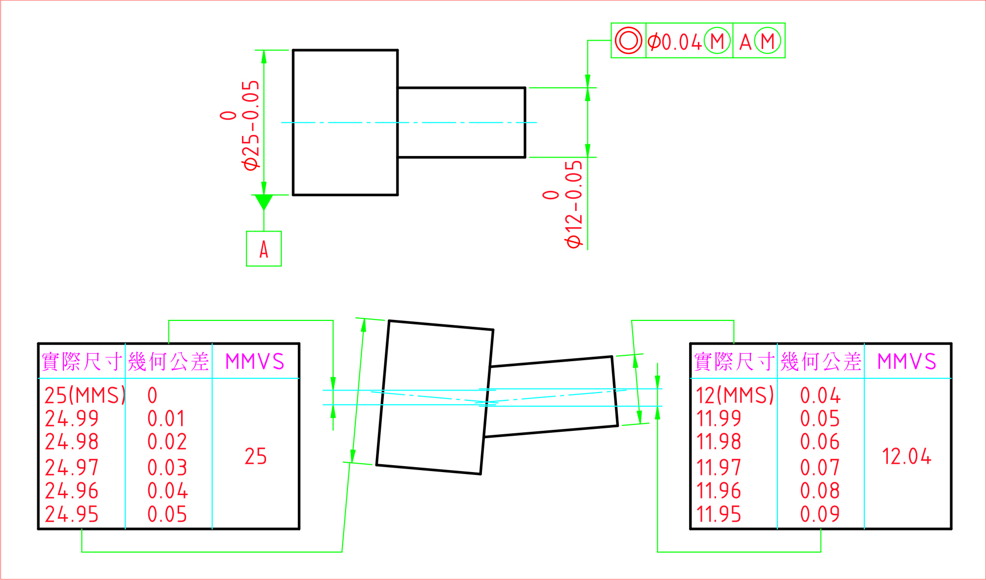 軸的合格條件:實際尺寸-幾何公差值不能小於最小實體實效尺寸(LMVS)。