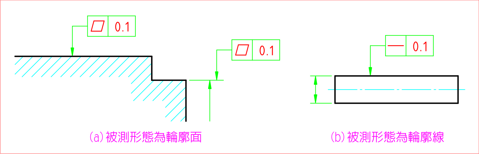 (1)單一形態(individual feature):按本身功能要求而定出形狀公差的被測形態,如圖4-2所示。
