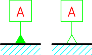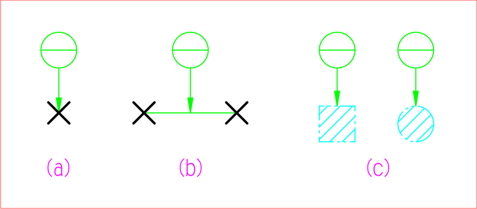 對於尺寸較大的零件,有時需要以幾何誤差較大或未加工表面(例如較粗糙的鑄造表面)作為基準。在這些表面上指定某些點、線或面,來確定基準平面,以構成三基準面體系,稱為「基準目標」。在圖面上基準目標表示如圖4-27所示。