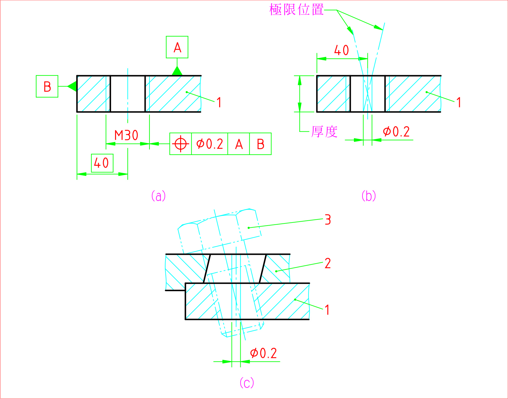 實際實效尺寸不得超出最小實體實效尺寸,實際尺寸不得超出限界尺度。