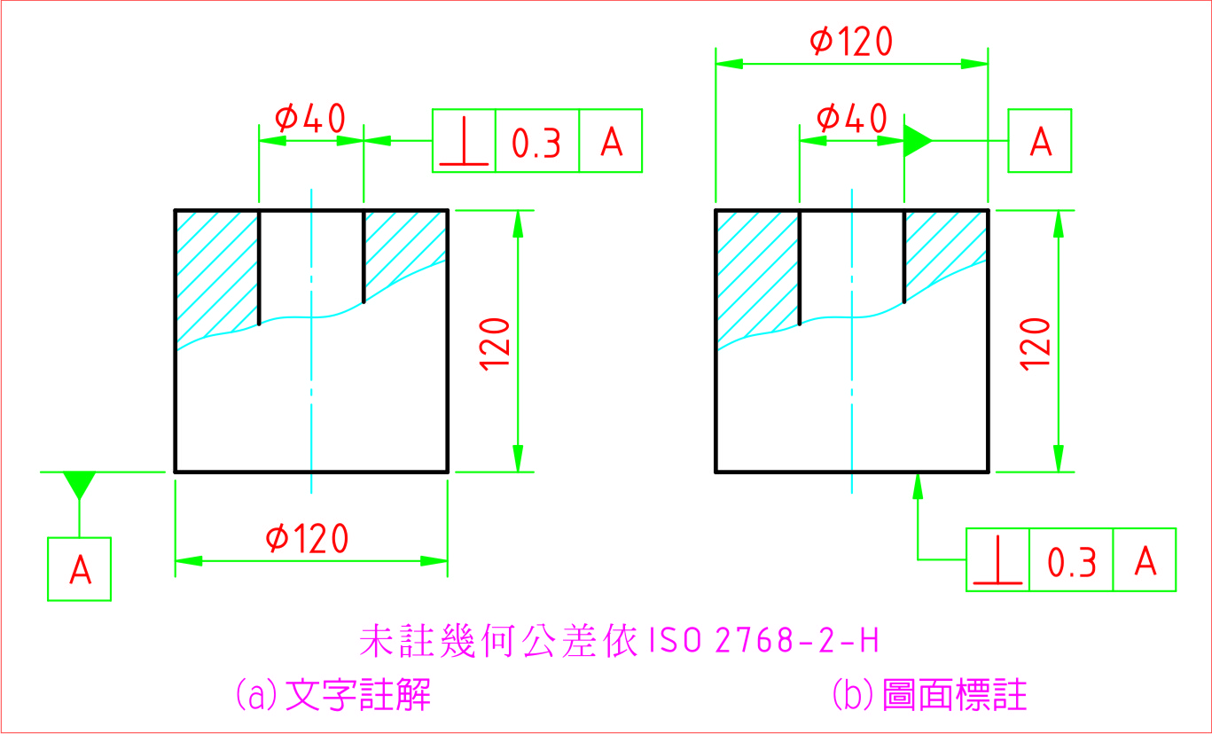 ISO2768-2規定真直度、真平度、垂直度、對稱度和圓偏轉度等5個一般幾何公差公差值。其餘各幾何公差性質均由各形態已標註的公差或未標註的一般尺寸公差(線性尺寸公差和角度尺寸公差)來控制其幾何公差值。