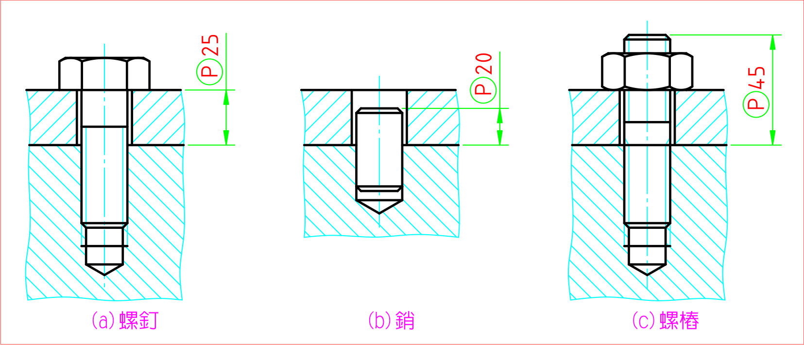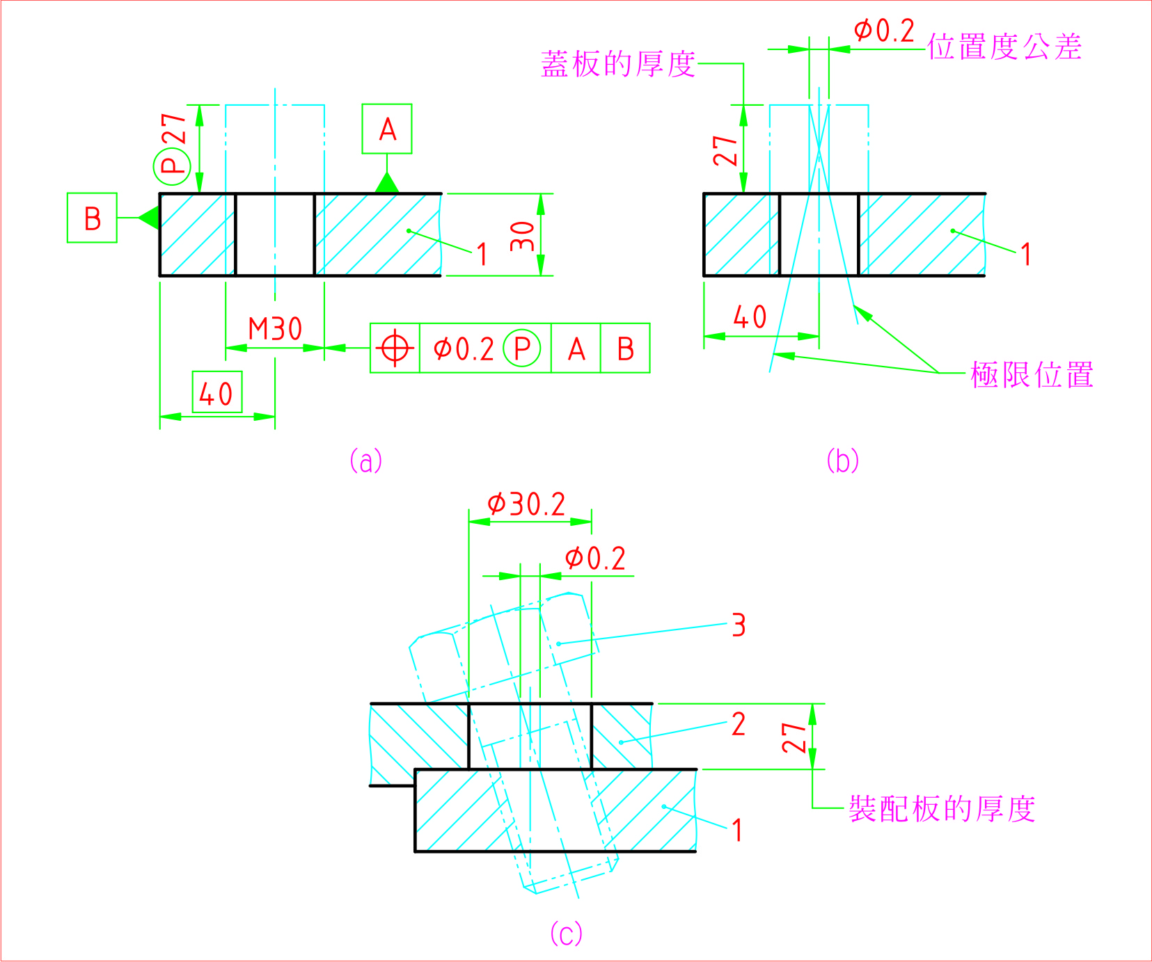 延伸公差區域一般常用於保證螺釘、螺樁、銷等緊固件的裝配,以避免裝配干涉。延伸公差區域多與幾何位置公差聯合使用。 18 圖4-15緊固件之延伸部分 螺釘之最小延伸長度為被連接件的最大允許厚度