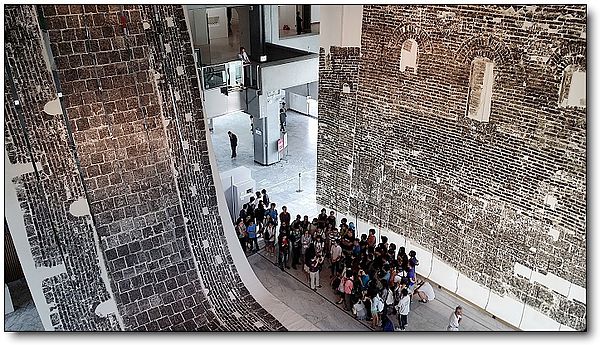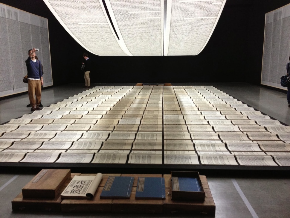 徐冰1990-91年的大型裝置《鬼打牆》在北美館大廳重現。