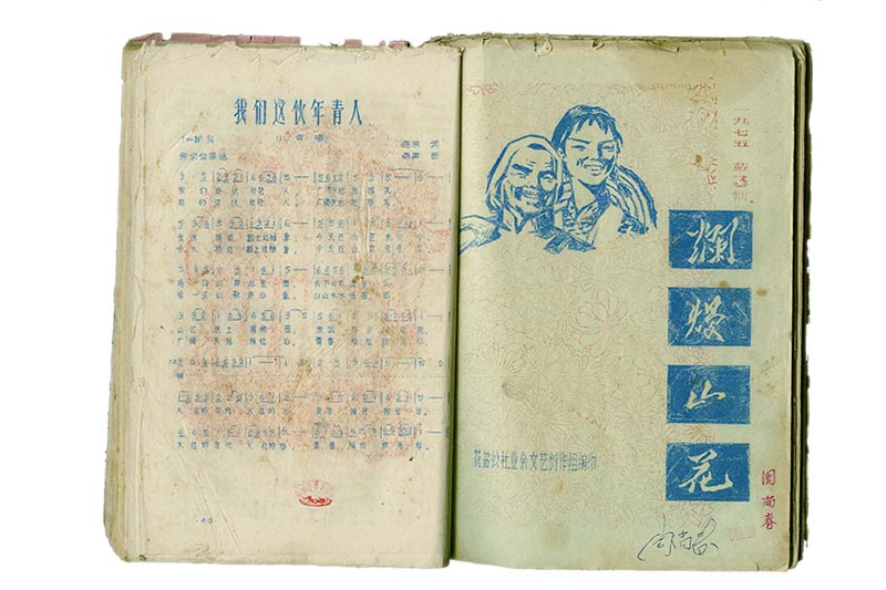 1975 年徐冰參與編輯的農村文藝刊物《爛熳山花》,手冊上的插畫為徐冰所作。