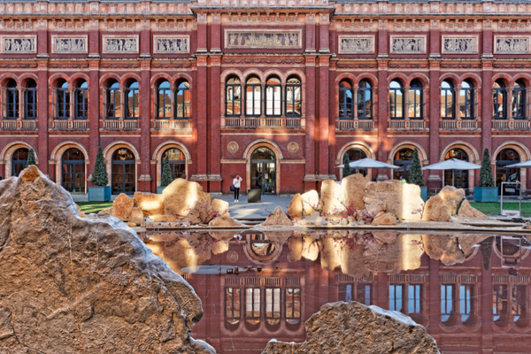 徐冰將來自中國的各式石頭圍住了博物館庭院中小人工湖,放入陶製的人造自然風景,建築,人與動物,建築內加上記錄人們生活的小屏幕,創造了“一個人類生活的理想之地”。