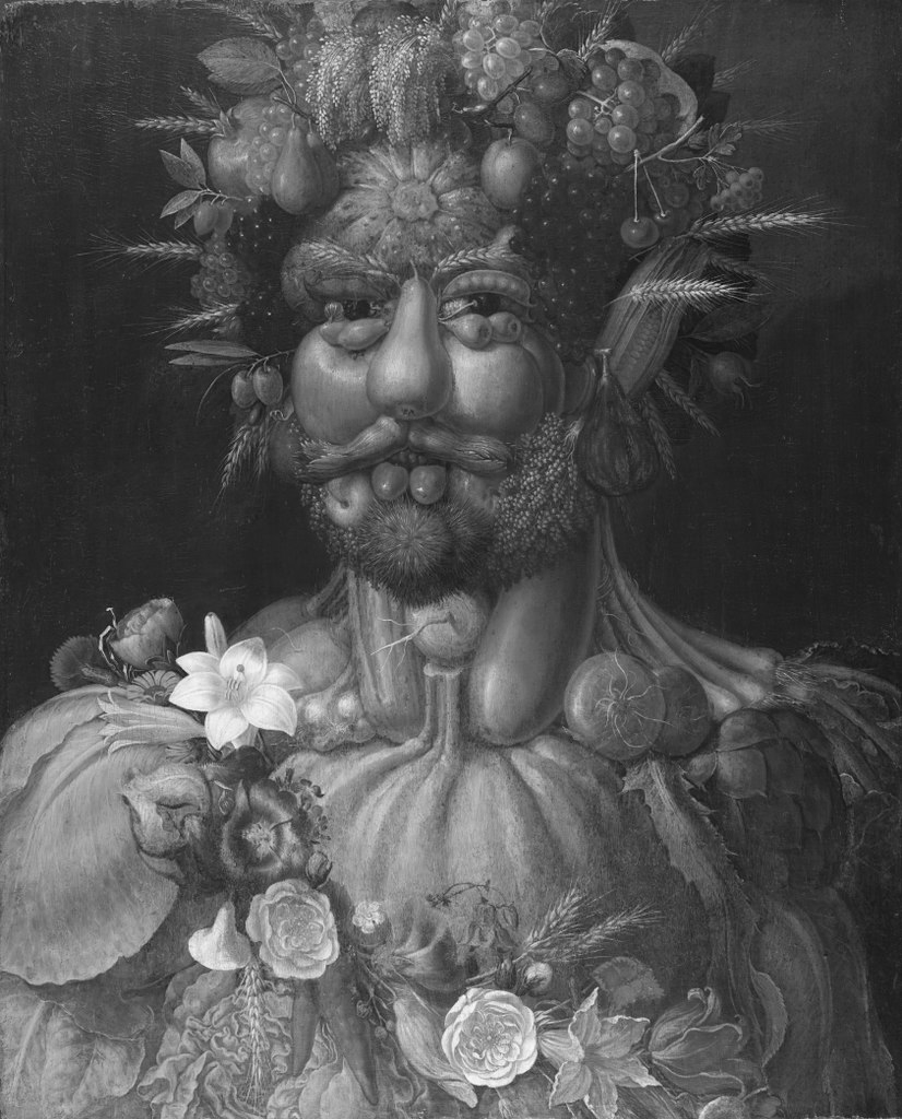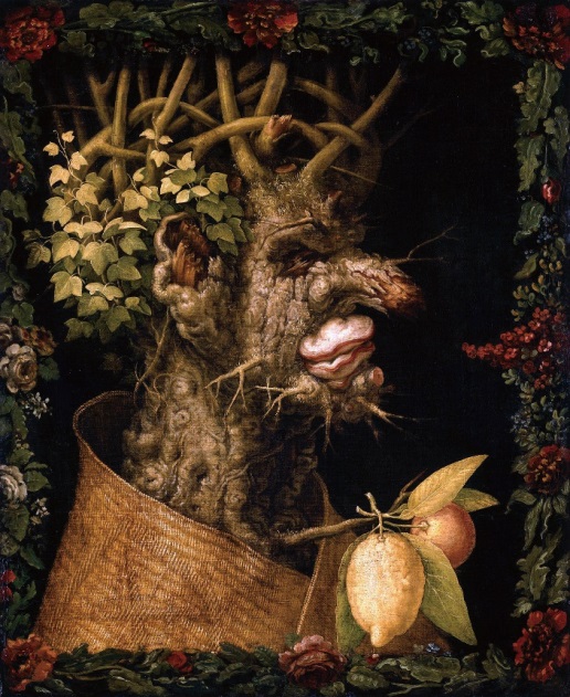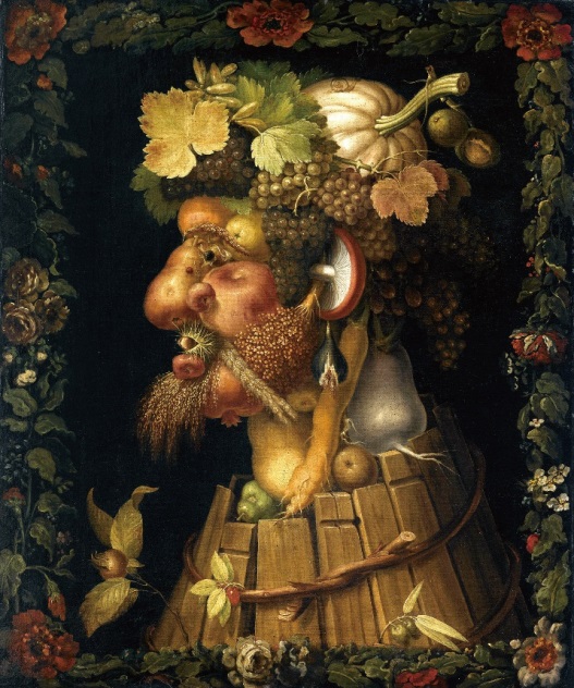 以蔬菜、水果等有機物體來表現人體各部分的怪誕畫風,也可見於現代藝術創作,隱含心靈不安與人性色欲的暗示。